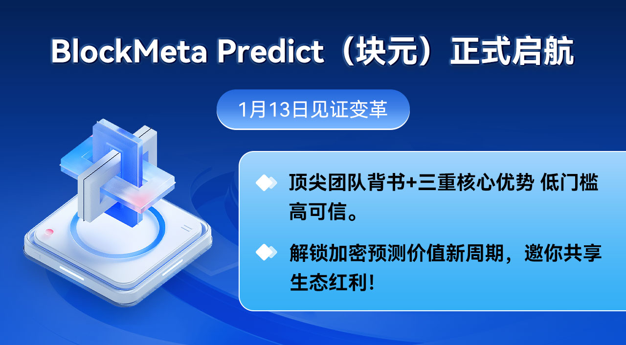 未来,BlockMeta Predict(块元)将持续深化AI与加密技术的融合应用,拓展跨链协作与场景落地,推动加密预测成为更高效的信息聚合与价值发现工具。1月13日,邀您共同见证加密预测市场新时代的开启!