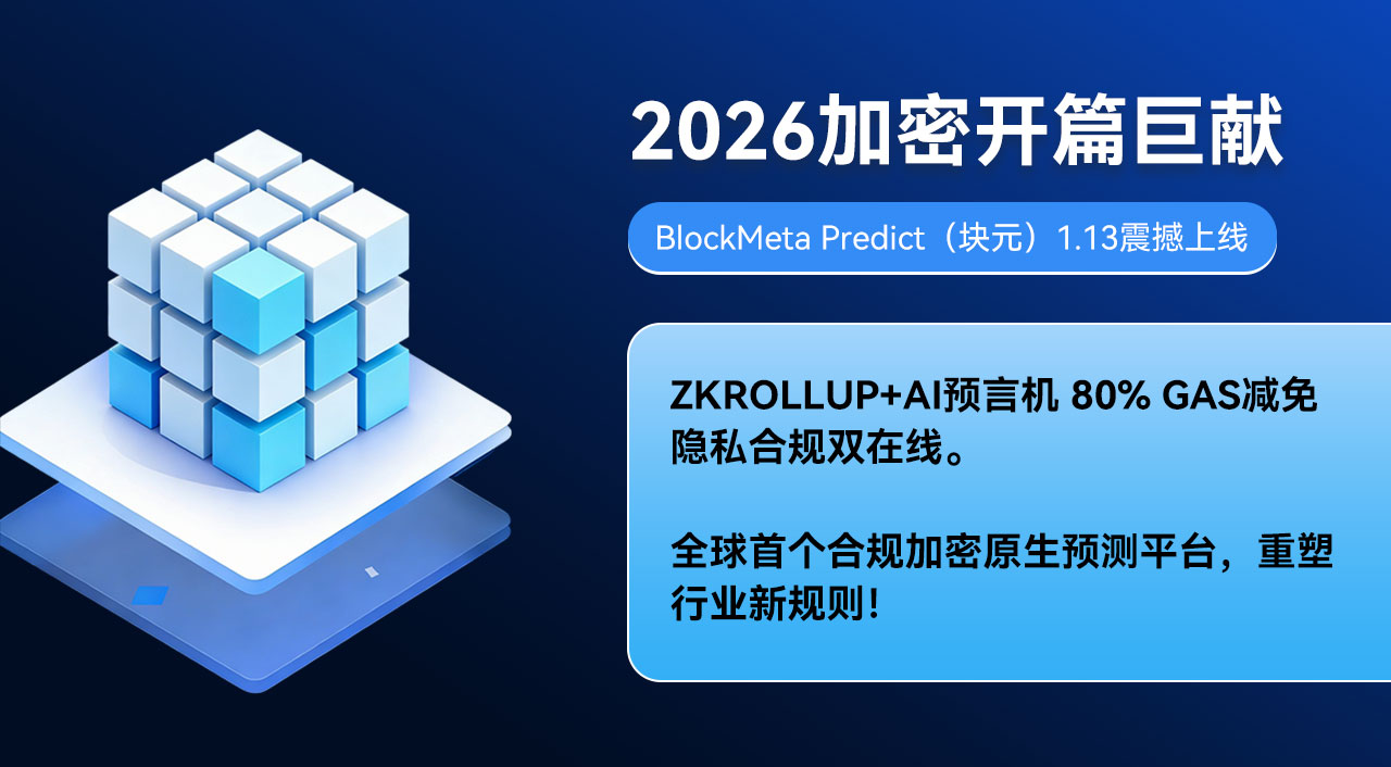 2026年加密行业开篇巨献,全球首个基于zkRollup架构的合规化加密原生预测平台——BlockMeta Predict(块元)正式宣布,将于1月13日重磅上线。凭借“技术革新+合规先行+专业团队”的三重核心优势,平台直击加密预测市场效率、安全与合规痛点,以突破性创新重构行业价值边界,为全球用户带来低门槛、高可信、强隐私的加密预测全新体验。
